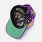 ALLWINS™ x Lakers LA Hat made from 5-Panel Purple Crown in Wool with Green Suede Underbrim featuring a signature ALLWINS™ barbwire inside tape and Kobe Bryant's Greatest Moments in silk inside lining.
